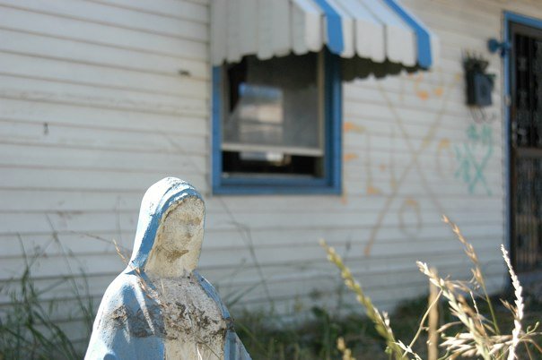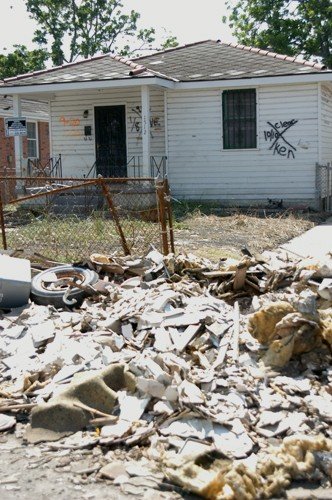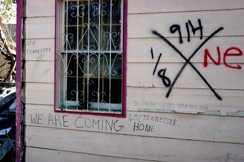 Scenes from a disaster. Homes and lives destroyed by manmade infrastructure failing to hold up post storm. I first visited NoLa in spring of 2005 around the French Quarter Festival. The next time was early 2006, shortly after the hurricane of August 2005. I’ve traveled to New Orleans 11 times in six years, attending the Jazz Fest and the Voodoo Music Experience, going off season and on, when it’s hot as hell and windy, cool and grey. I’ve eaten crawfish étouffée and shrimp creole, drank frozen cafe au laits and French 75s and Pimm’s Cups and spooned strawberries arnaud and catfish topped with crab and crawfish. I’ve poured Louisiana hot sauce on red beans and rice and danced barefoot in fields. I’ve listened to a lot of people, seen a lot of New Orleanians, photographed them, talked with them. I’ve spent hours of near pure bliss wandering around historic, above ground cemeteries, snapping photographs and reading inscriptions. I’ve sat in countess voodoo temples, walked over many cobblestoned streets on slow, sleepy evenings, sat under magnolia trees and followed the scent of jasmine around the Garden District. I’ve listened to jazz, blues, ragtime, dixieland, circus acts, old timey, bounce, cajun and everything in between. I’ve tried to count all of the colors of the brightly painted creole cottages and the tropical flowers in lush gardens and curves and details in iron latticed balconies.