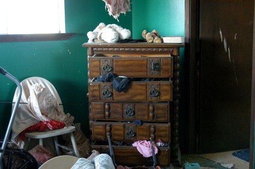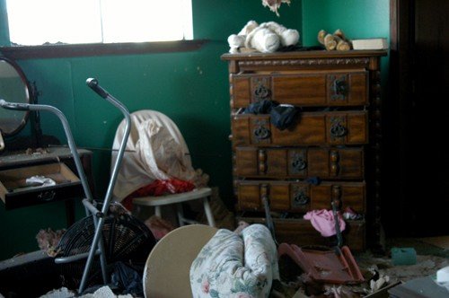 Inside a Lower Ninth Ward house six months after Hurricane Katrina hit New Orleans, Louisiana, early 2006.
