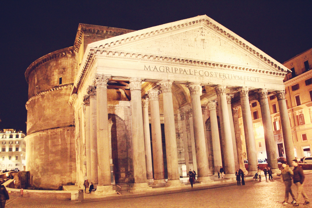 The Pantheon, which draws me to it at night to admire it’s immortality against a navy sky.