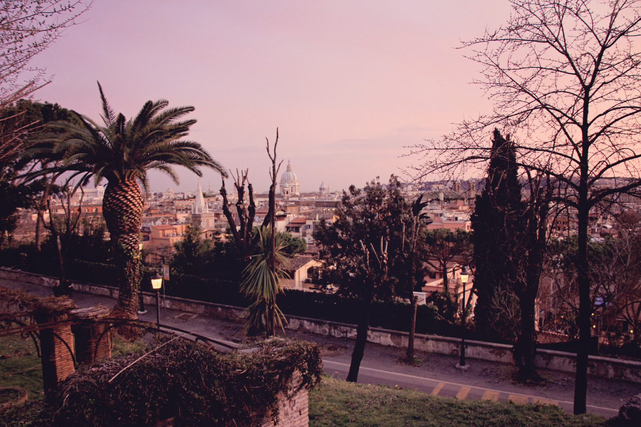 Looking over the city at dusk from the Villa Medici where the Pincian hill and the Spagna area meet.